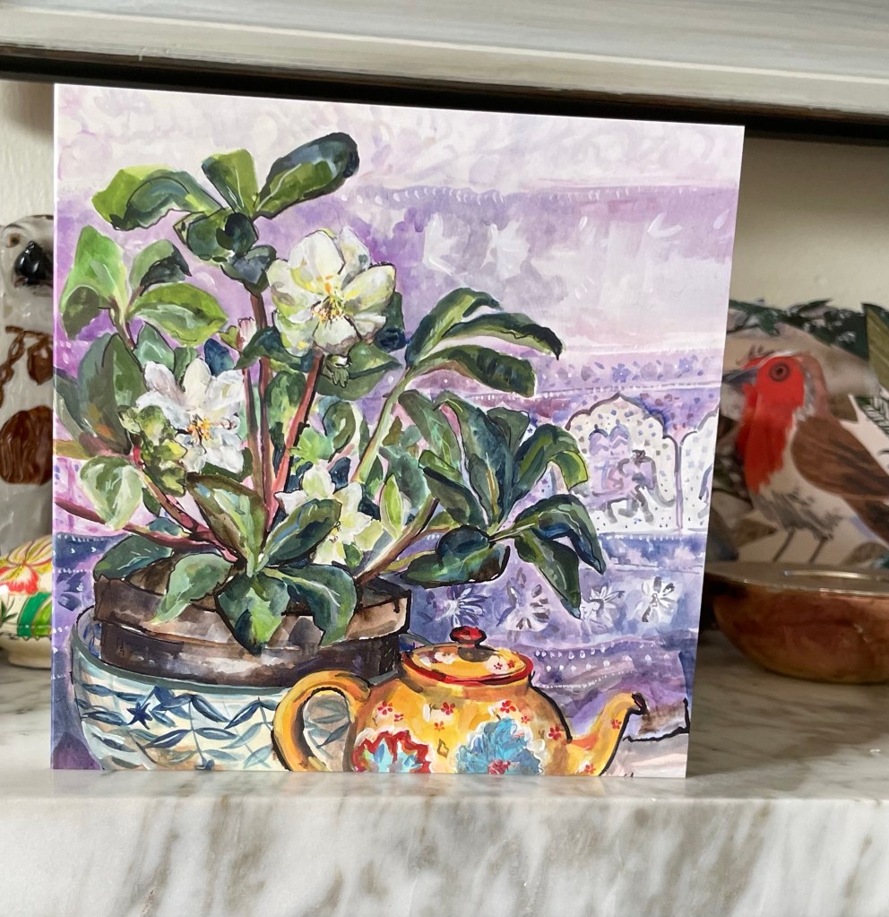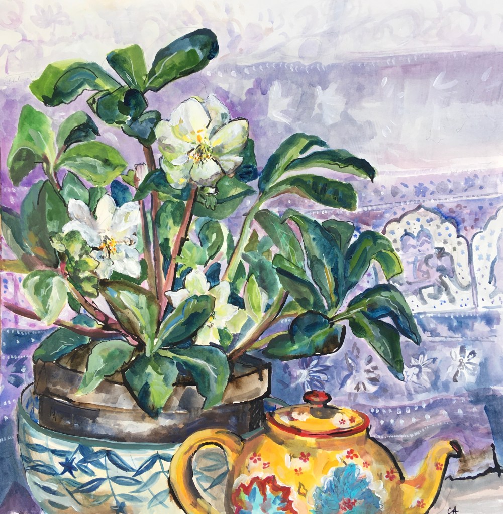 CA133 Hellebores and Yellow Tea Pot