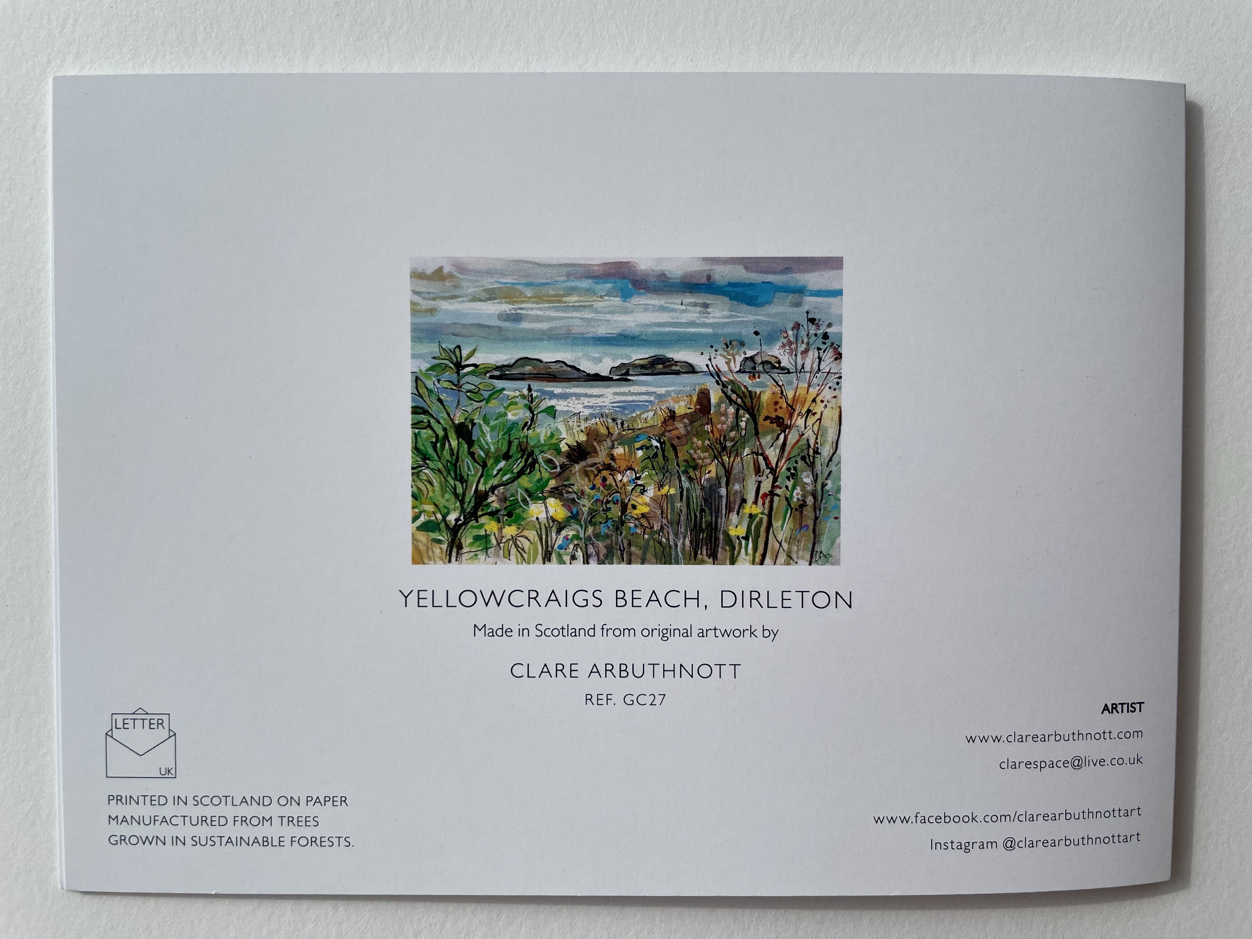 GC27 Yellowcraigs Beach Yellowcraigs Beach, Direlton – GC27 A large 5 x 7 inch card. £2 each Yellowcraigs Beach GC27 Yellowcraigs Beach GC27 GC27 large 5 x 7 ‘’ card £2 Related