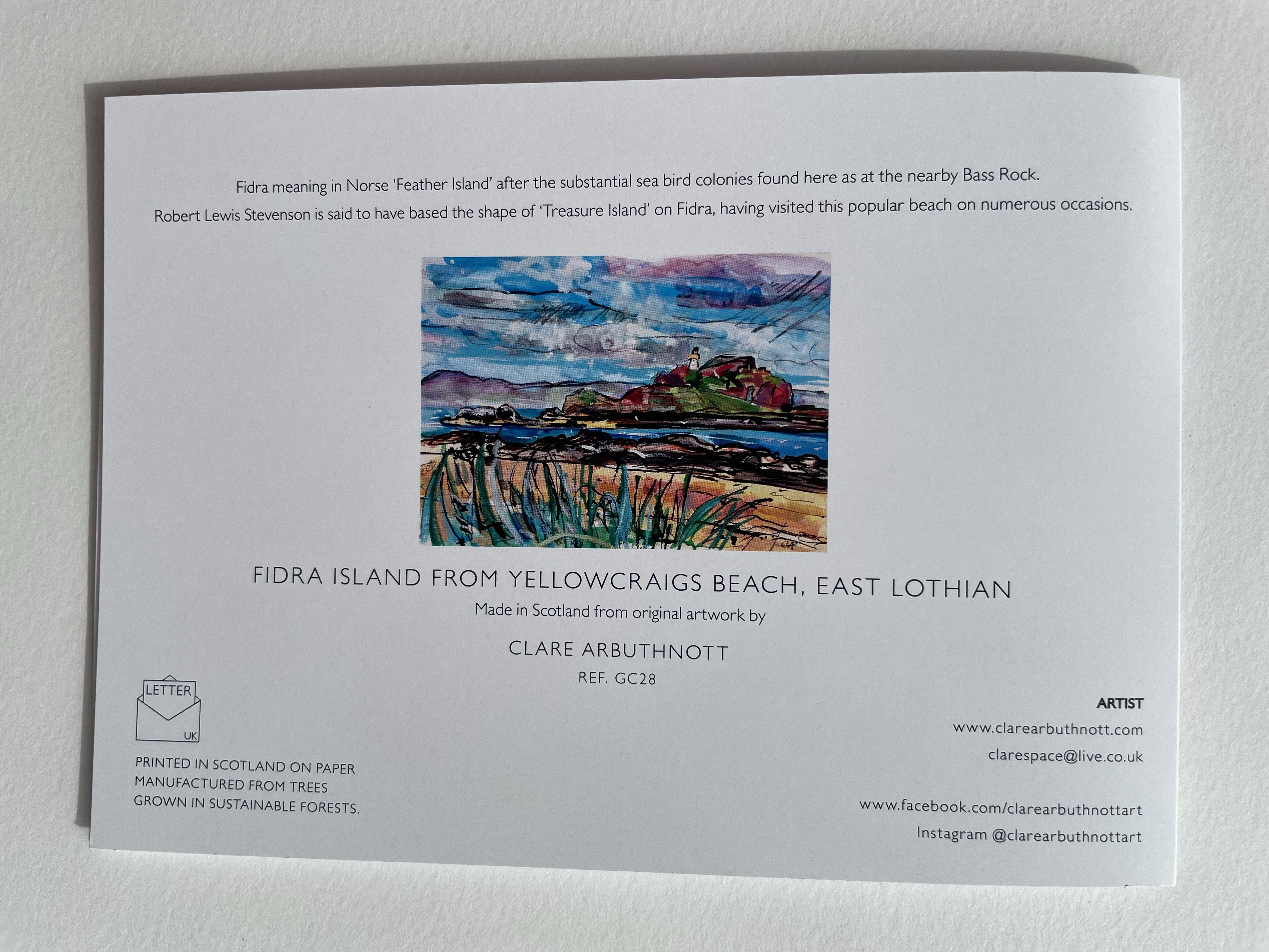 GC28 Fidra Island Fidra Island from Yellowcraigs Beach, East Lothian. GC28 a large 5 x 7 inch card. £2 each plus postage 5 x 7’’ card £2 Large 5 x 7’’ card £2 Related