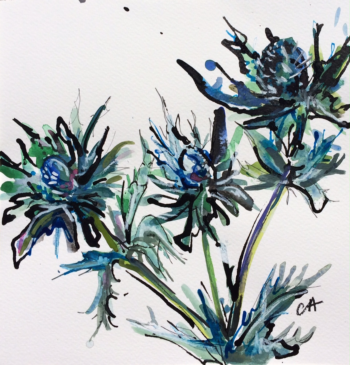 Sea Holly Thistle CA046 CA023 Geraniums and CA046 Sea Holly cards CA039 The Lamb, Craigleith and Bass Rock card with the reverse of CA046 Sea Holly Thistle Sea Holly Thistle CA046 Square £2 Related